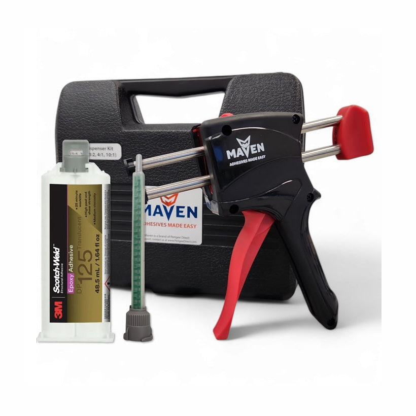 3M Scotch-Weld Epoxy Adhesive DP125 Translucent is the clear, unfilled version of the DP125 family. Like its gray counterpart, it is a flexible, two-part structural epoxy that provides tough, durable bonds. However, because it lacks the fillers found in the gray version, it flows more easily (lower viscosity) and cures to a translucent finish, making it ideal for applications where the bond line needs to be less visible or where "wetting out" a surface is important.
