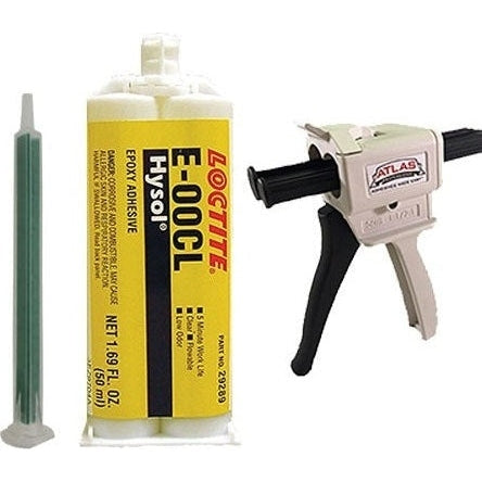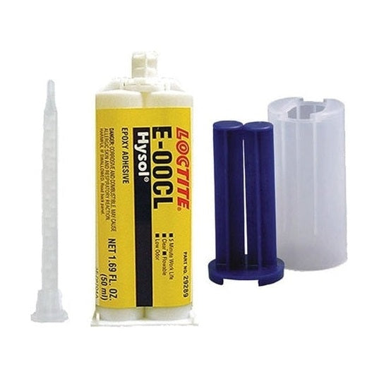 Loctite EA E-00CL (Hysol) is a two component, medium-low viscosity, fast-setting 3-minute, industrial grade epoxy adhesive. It works on a wide variety of substrates including plastic, metal, glass, rubber, wood and ceramics. 50 mL Cartridge. Ideal for general purpose bonding, potting, or encapsulating. Works on a variety of plastic, metal, glass, rubber, wood, and ceramic substrates. Well suited for applications that require a clear bond line.