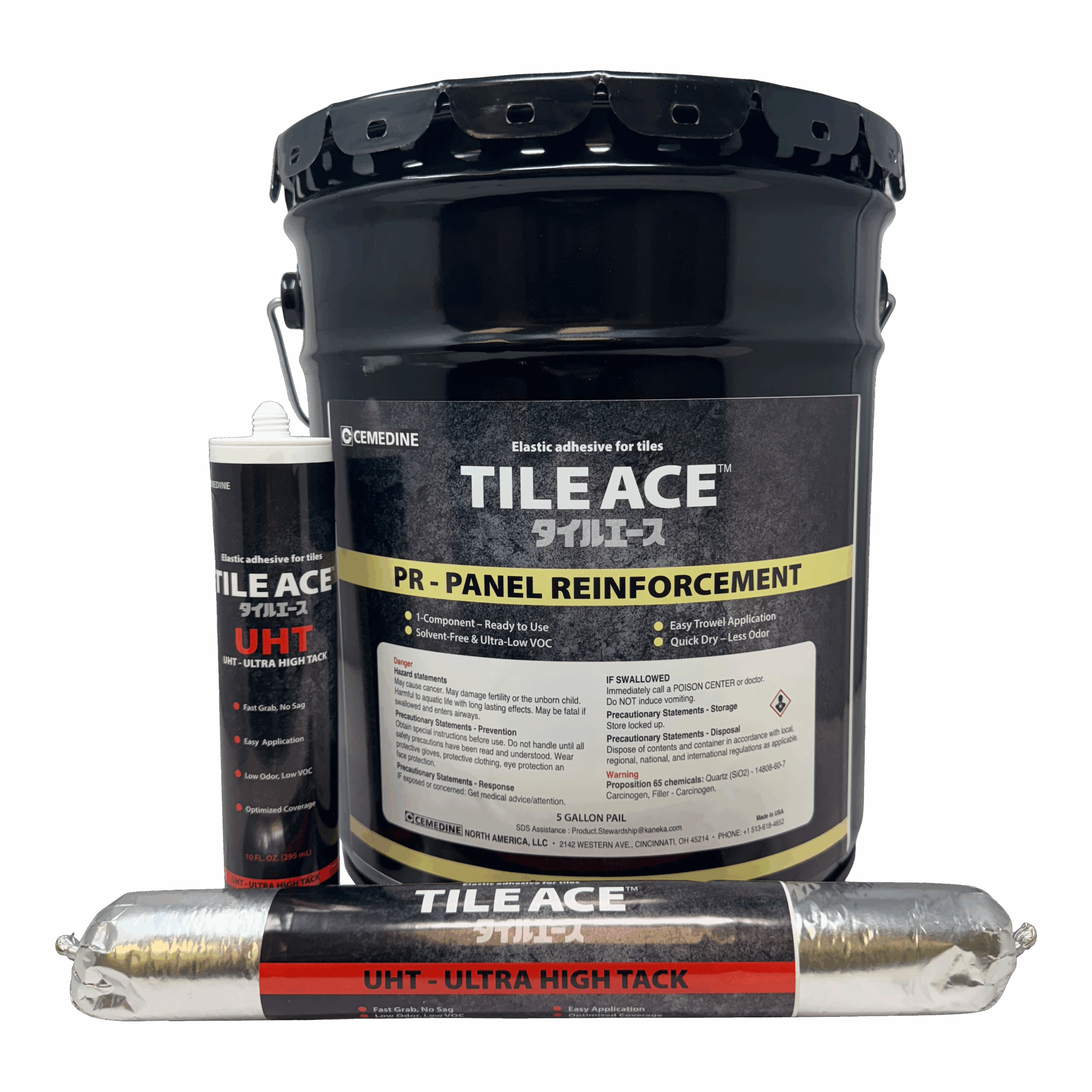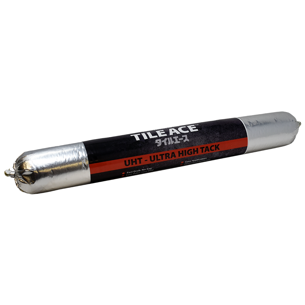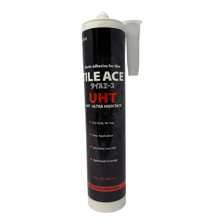 Product Overview TILE ACE UHT (Ultra High-Tack) is a premium, single-component, moisture-curing adhesive formulated with advanced Kaneka MS Polymer® technology. Specifically engineered for bonding large-format composite porcelain tiles to interior walls, it provides an exceptionally strong initial "grab" that often eliminates the need for mechanical fasteners or temporary supports. Proudly made in the USA, this adhesive significantly reduces installation time while maintaining a professional, long-lasting bond.
