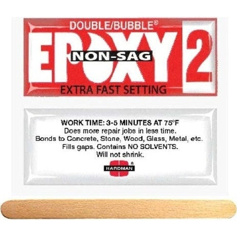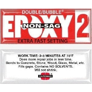 Hardman Double Bubble Red Extra-Fast Setting Non-Sag/No-Drip Thixotropic Epoxy is among the fastest setting epoxy available. Thixotropic simply means that it's a thick epoxy that doesn't drip, and is also excellent for filling gaps. It's extremely strong... At 3,000+psi strength, it's stronger than high-strength Concrete! It's the perfect 'clutch player' for on-the-spot bonding jobs, where fast setting, no-dripping or running, and high strength are key.